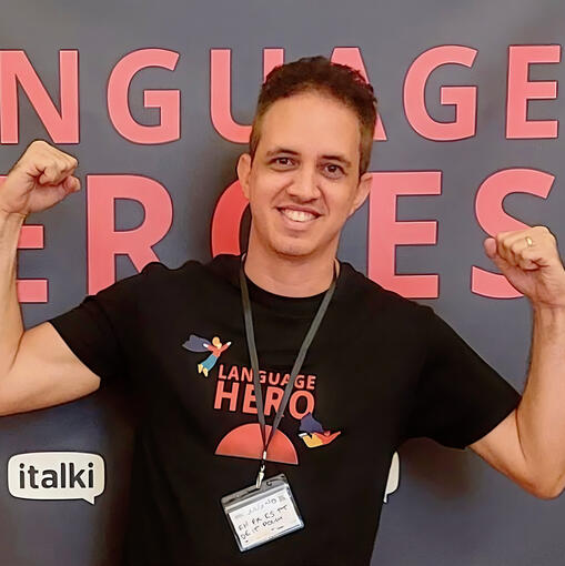 Juliano TimbóUm poliglota brasileiro apaixonado por idiomas desde a adolescência, quando aprendeu inglês e francês. Depois do bacharelado em Ciências da Computação na faculdade e trabalhar com Tecnologia por alguns anos, resolveu mudar de carreira e tornou-se tradutor e intérprete.Ao longo dos anos, aprendeu outros idiomas, como alemão, espanhol, italiano e polonês. Ele participa ativamente da comunidade poliglota desde 2013, principalmente em um clube poliglota local de sua cidade, Fortaleza.Desde 2016, também organiza uma conferência anual de línguas chamada Poliglotar, em várias cidades do Brasil. Também tem participado de outros eventos de idiomas e tradução em muitos países, como México, Polônia, Hungria e Malta. Pai de duas meninas, as gêmeas Sara e Rebeca.